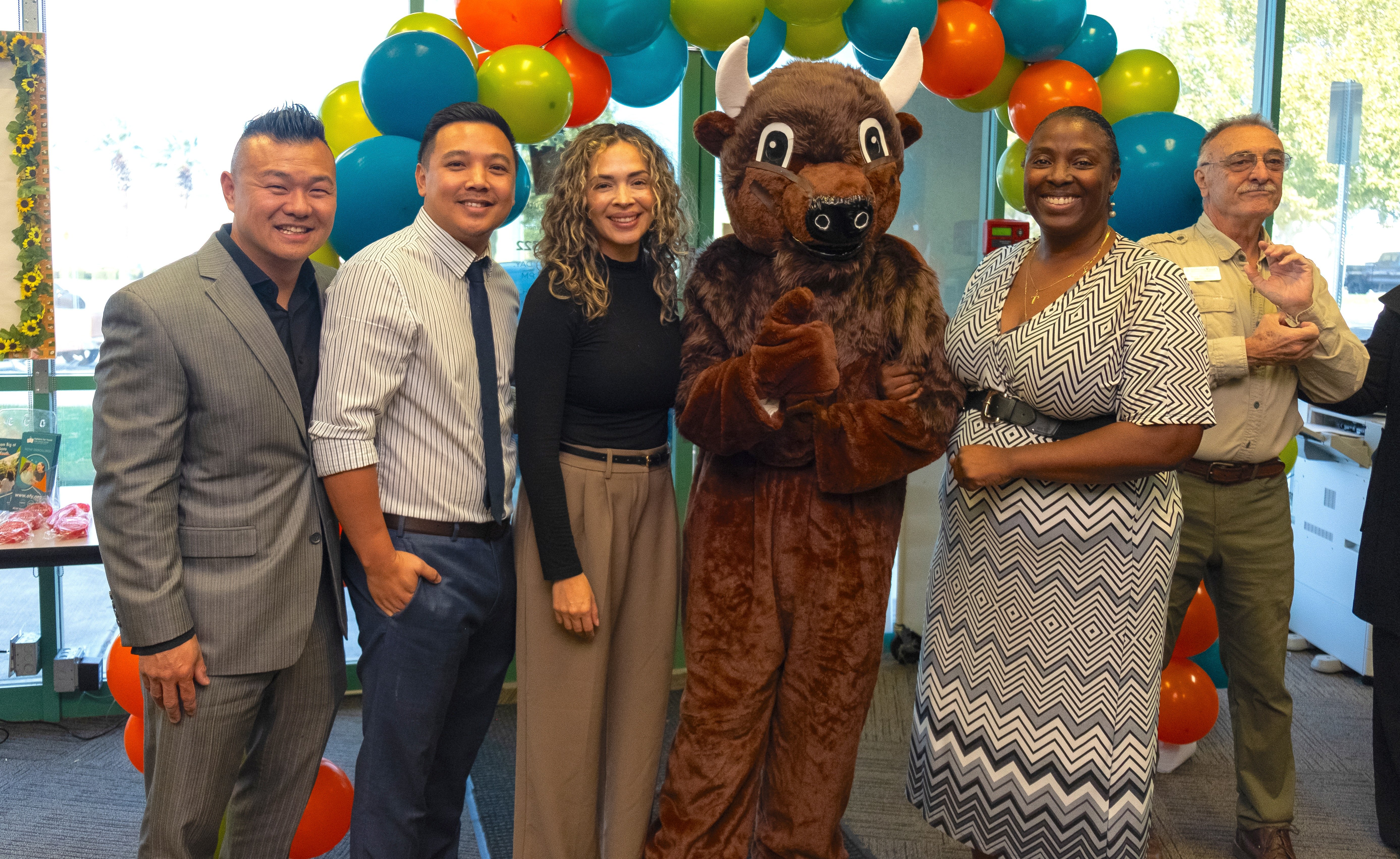 OFL Baldwin Park students Atziri Talavera and Autumn Davies with (left to right) Melissa Martinez, Kat Erpenbeck, Megan Betry, Richard Moreno, and Superintendent Ileana Kiriakos.